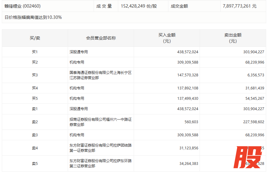 赣锋锂业今日涨停,3家机构专用席位净买入4.30亿元赣锋锂业今日涨停,3家机构专用席位净买入4.30亿元